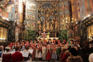 Trzeci koncert, najbardziej wzruszający, odbył się o godzinie 13:00, w wypełnionym po brzegi Kościele Mariackim. W tym historycznym, cudownym, zabytkowym miejscu, kolędy i pastorałki w wykonaniu Zespołu zabrzmiały przepięknie, a nagrodą były oklaski z prośbą o bisy i wiele odebranych gratulacji od znanych w Polsce osobistości między innymi Jerzego Stuhra. Kr.Kw.